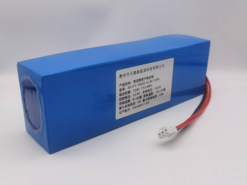 型号规格:18650 12.8V 12Ah磷酸铁锂宽温电池组(低温-40℃,高温80℃)